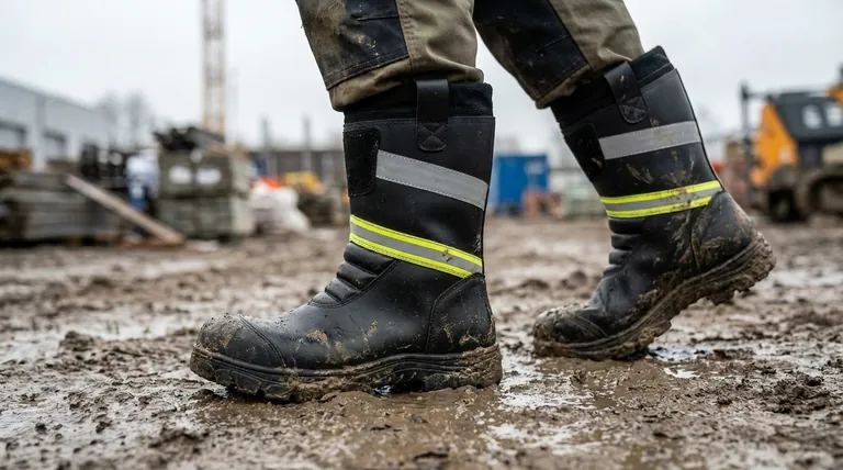 O benefício principal do PVC é sua barreira completa à prova d'água. Esta não é apenas uma característica protetora; é uma característica de conforto crucial. Manter os pés secos é o primeiro passo para prevenir bolhas, desconforto e outros problemas relacionados à umidade em condições úmidas e lamacentas.