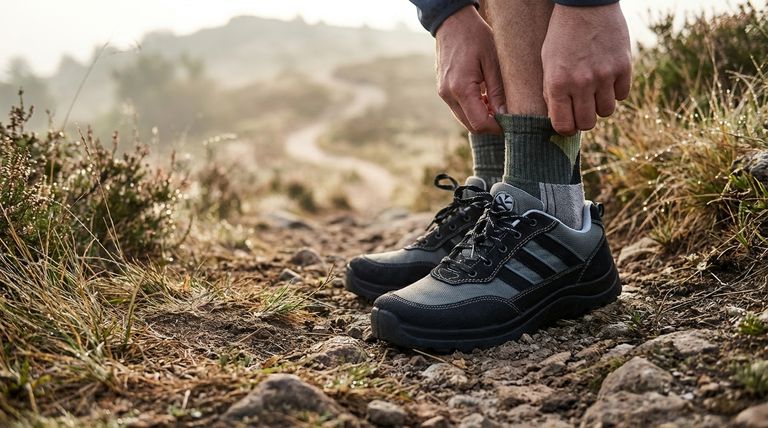 - Se o seu foco principal é caminhar em condições frias ou úmidas: Use um sistema de duas camadas com uma meia fina sintética por baixo de uma meia de lã mais grossa para maximizar o isolamento e a absorção de umidade.